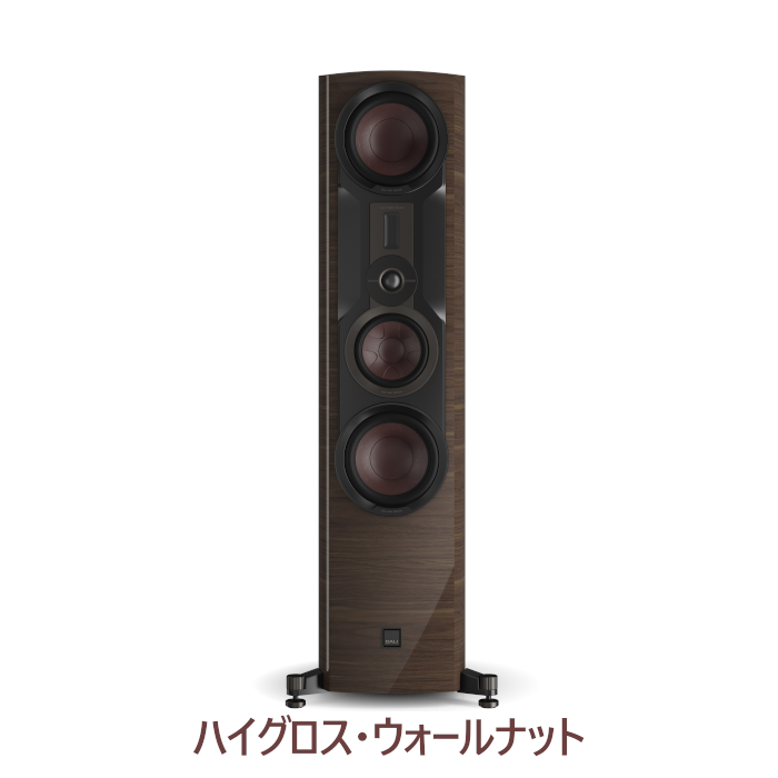 ◆ 特徴 EVOLUTION THROUGH TECHNOLOGY DALI EPIKORE9は、ハイエンドクラスの4ウェイ・フロアスタンド型スピーカーです。フラッグシップスピーカー「DALI KORE」のテクノロジーを色濃く継承することで「DALI EPICON」シリーズから飛躍的な進化を遂げています。数多くの特許取得済みのテクノロジーと卓越した製造品質、そして最上級のマテリアルを組み合わせることで、広いリスニングスペースにワールドクラスのビジュアルと音楽体験を提供します。 EPIKORE 9は、2基のLow Loss SMCTM Gen-2 200mmウーファー、Low Loss SMCTM Gen-2 165mm クラリティ・コーン・テクノロジー™ミッドレンジ・ドライバー、そしてDALIのスピーカーを特徴づけるDALI EVO-KTM ハイブリッド・トゥイーター・モジュールを組み合わせることにより、圧倒的に広大なダイナミックレンジを実現。繊細なディテールからライブコンサートの壮大なスケールまで、音楽のあらゆるニュアンスを、表現豊かに描き出します。 先進的な構造のカーブド・キャビネットは、よりクリーンで深みがあり、そしてより正確な低音再生を可能にするコンティニュアス・フレア・バスレフポートンの美しさがEPIKORE 9のパッケージングを完璧なものにしています。 HANDCRAFTED IN DENMARK 印象的な木目が美しいリアルウッドパネルと、エレガントなピアノフィニッシュで仕上げられたEPIKORE シリーズラグジュアリーなキャビネットは、デンマークが誇る木工職人の技によるキャビネット製作における傑作です。 そして、音響的に完全に満ち溢れたサウンドのために完璧な低共振環境を作り出します。 仕上げはハイグロス・ブラック、ハイグロス・マルーン、ハイグロス・ウォルナットの3種から選ぶことができます。