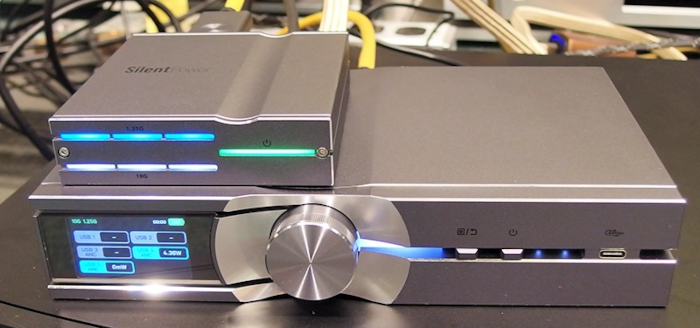 2025/07/19 Silent Power OMNI USB 販売価格 152,900円(税込) | 店長の大後悔日誌より Silent Power さん新製品のご紹介です。 発売日は 7月26日(土) で、ご予約受付中です。 ネットワークオーディオの高音質化はとどまるところを知りません。 先日 TOP WING さんのオーディオグレードルーターが発売された時点で、ネットワークオーディオの進化は完了してあとは、各機材のクオリティアップへ移行するだろうと考えておりました。 ハードはすべて出そろって、これ以上増えないと思ったのです。 そこへ、青天の霹靂のように現れた新製品が今回ご紹介する「USB光絶縁装置」 です。 これは想像すらしておりませんでした。 ルーターやSFP光絶縁装置は、既存の一般製品が存在しており、それをオーディオクオリティに仕上げた物で存在は以前から知っておりました。 ですが、今回の「USB光絶縁装置」に関してはそのような機能を持つ物が存在することすら、知りませんでしたので大変驚きました。 この OMNI USB の機能は、USB信号を一旦光へ変換して、ノイズを除去した後に、またUSB信号へ戻して送り出す。 までを行います。 具体的な使用方法は、ネットワークトランスポート と USB/DAC 間を接続するUSBケーブルへ接続して使用します。 もちろん、USB接続してある箇所であれば、どこへ接続しても問題無く機能します。 ですが、最も効果的な位置はネットワークトランスポートとUSB/DAC間だと思います。 2筐体式となっており、上段の小箱へ USB信号を入力し、内部で光信号へ変換された後に、光信号で下段の大箱へ伝送され、大箱内部で光信号からUSB信号へ戻して、デジタル出力されます。 ポイントはUSB出力だけで無く、同軸デジタル出力も可能な点です。 USBから同軸デジタルへ変換する、良質なDDコンバーターが存在しませんので、DDコンバーターとしても大変優秀なモデルです。 恐らく、今までに発売された中で最高峰のDDコンバーターではないでしょうか。 このモデルはUSB信号のノイズ除去を目的として設計されておりますが、光絶縁だけで無く、複数の手法により高音質化を目指しています。 まず、本体の動作はバッテリー動作(小箱も同様)です。 内部に組み込まれたバッテリーで動作するため、ACラインからのノイズに影響されません。 さらに、iFi さんお得意のアクティブノイズキャンセル機能も盛り込まれており、徹底的なノイズ対策が施されております。 光接続で電気的絶縁を行い、バッテリーで電源ノイズを減らし、残ったノイズもアクティブノイズキャンセリング技術で消し去るという贅沢な構成となっております。 バッテリーは常に監視されており、最適な動作と長寿命化が図られています。 文字にするだけで、音が良さそうですね。 一点、本当に残念な点があります。 USB入力端子が USB-C である点です。 世に出ているオーディオ用 USB ケーブルはその多くが USB A-B ケーブルです。 それらの資産を活用するためには USB-B/USB-C 変換アダプターが必要となり、接点が増えてしまう点が残念でなりません。 ただ、その変換アダプターを使用してすら、このモデルの魅力は衰えません。 もう完成したと感じていた、弊社リファレンスシステムのネットワークトランスポート LUMIN U2 とUSB/DAC molamola Tambaqui DAC 間へ接続して視聴しました。 これ以上があるのか?と感じていたさらにその先へ突き抜けました。 よくある安直な表現で申し訳ございませんが、まさにベールを剥いだようなイメージです。 今まで聞いていた音は、薄皮一枚まとっていたことに気がつかされました。 もちろん、その状態でも素晴らしい音楽体験が出来ておりましたので、不満は無かったのですが・・・ さらに上があるとは驚きました。 小箱-大箱間は、付属の専用光ケーブルで接続します。 上記画像が、システムとしての完成状態です。 大箱の ピュア電源 から 小箱へ USB-A-C(黒いケーブル)ケーブルで接続します。 USBラインの光絶縁というシステムですので、使用出来る箇所が限定されます。 弊社のおすすめしている Roon システムの場合ですと、USBラインは最終段階のネットワークトランスポートとUSB/DAC 間しかありませんので、必然的にそこへ挟む事となります。 残念ながら、一体型ネットワークプレーヤー(DAC内蔵型)の場合は使用出来る箇所がありませんのでセパレートネットワークプレーヤーをご使用の方専用機材となります。 PCオーディオを実践中の方であれば、PCとUSB/DAC 間へ挟む事で効果的な音質アップが可能です。