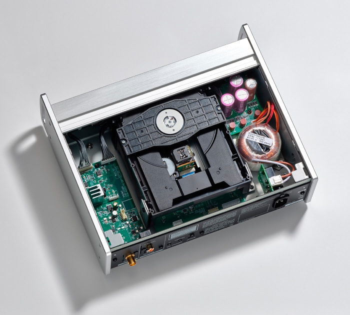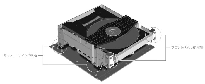 ◆ 特徴 TEAC自社開発のCD-5020Aをベースに改良を施した専用設計のCDドライブを搭載 CD-5020Aは、その耐久性と信頼性により、⾧年にわたり放送局用のCDプレーヤーに搭載されている、TEACが誇る自社開発CDトランスポート・メカニズムです。このCD-5020Aをベースに改良を加え、更なる高音質に進化したメカニズムを採用しました。 セミフローティングマウント CDメカニズム全体は、本体のシャーシに完全に固定しないセミフローティング状態でマウント。レーザーピックアップを正確な位置に移動させるためのアクチュエーターやスピンドルモーターから発生する振動が、シャーシに伝わり共振し、CDの読み取りに悪影響を及ぼすフィードバックが起きないように細心の注意を払って設計されています。反面、駆動部品のマウント時に使われるダンパーが音質に及ぼす影響を排除するため、あえてリジッドな固定方法を採用する箇所を設けるなど、全体の振動モードを考慮し剛柔を使い分けた構造とすることで、より正確で鮮度の高いCDの読み取りを実現しました。 高音質を追求した駆動制御回路 CDメカニズムの駆動制御回路は更なる高音質化のためCD-5020Aを進化させた独自設計とし、穏やかなフィードバックでスピンドルモーターをコントロールして自然な回転状態を作ることで、よりナチュラルで開放的なサウンドを実現しています。また、スピンドルモーターやアクチュエーターにスイッチングノイズの発生しないBTL駆動方式を採用、微小な読み取り信号への影響を排除し、信号の純度を高めています。 トロイダルコアトランスを使用したディスクリート電源回路 電源にはトロイダルコアトランスを採用し、さらにディスプレイのOLED用、CDドライブおよびマイコン回路用、オーディオ回路用それぞれに専用の2次巻線と整流回路を設置し電源をセパレート。音質を考慮してCDドライブ、マイコン、オーディオ回路にそれぞれ独立したディスクリート電源回路を採用しています。オーディオ回路用電源は、従来から進化し、クロック用とデジタル出力用それぞれ、別電源とすることで、さらなる高音質化を実現しました。 メカニカルコンストラクションと電気回路の細部を再チューニングし、さらなる高音質化を実現 従来のPD-505Tから機構部品を見直し、メカニカルな振動モードをさらに効果的に制御できるように徹底したチューニングを施しました。電気的にも回路全体のグラウンドの最適化に加え、ディスプレイ用のOLEDのノイズアイソレーションを強化することで、よりピュアな信号出力を可能にしました。 使用しないデジタルアウトをOFFにすることで高音質化 同軸または光デジタル出力のいずれかを選択できるように、回路をアップデート。使用しないデジタル出力回路の動作をOFFにし、回路全体の負荷を軽減させることで、出力信号の純度を高めました。 低位相雑音タイプの水晶発振器 デジタル接続においては、上流となる機器のクロック精度がシステム全体のクオリティを左右します。PD-507Tでは、内部クロックに位相雑音の特性に優れた、低位相雑音タイプの水晶発振器を採用。高精度な基準クロックを元にCDの信号を読み取ることで、CDに刻まれた本来の音を正確にデジタルアウトから出力します。 10MHzの外部クロック入力を搭載 マスタークロックジェネレーター CG-10M-Xを接続し、より高精度なクロック信号を入力することで、さらなる音のグレードアップが可能です。また、デジタル再生システムにおいて、システム上流の精度向上による音質改善にとどまらず、DACとのクロック同期など、さらにハイレベルなデジタルシステムの構築も可能となります。 制振性と高級感を両立するフルメタル筐体、デスクトップに設置できるA4 サイズ 筐体のすべてを外来ノイズに強い金属パネルで構成することで、電磁ノイズの侵入を抑制し、クリーンなサウンドを実現します。さらに、金属製シャーシを両サイドから包み込む8mm厚のアルミパネルは、シャーシや前後パネルに不要なねじれや歪みを与えない取り付け構造とし、強固かつ精密な筐体を実現しました。また、A4サイズ(天面)の筐体は机の上やサイドボードなどのわずかなスペースにも設置が可能です。 TEACオリジナルの3点支持Stress-Less Foot採用 削り出しスチール製のTEACオリジナル Stress-LessFootを採用。底板とフットとの接合に遊びを持たせることで、定位感に溢れ、豊かで自然な響きを獲得しています。また3点支持により、床面のわずかな歪みにも影響されることなく安定した設置を可能にしています。 セミフローティング・トップパネル アルミニウム製トップパネルはセミフローティング構造を採用。ネジでシャーシに締め付けず、サイドパネルのみで挟み込んだ半固定状態にすることで、開放感に優れた音を実現しました。